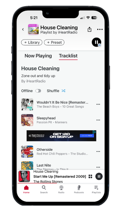 Music is a good motivator that's not just for fitness. Music can boost your mood for any activity your doing, cleaning included. And, if you can believe it, you can find playlists specially curated just for housework. Find "cleaning" playlists on the music apps, like iHeartRadio, iTunes, Spotify. It'll get you pumped up and ready to clean. To find them, go to the magnifying glass icon in the music app and type in "cleaning" or "housework" in the search field and they'll appear.